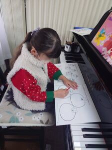 11月にワークが終了。 四分音符と二分音符と全音符,丁寧に上手に書けましたね♪