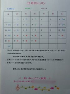 通常レッスンはお休みになりますが 12/22(月)奈良教室&12/24(水)天理教室にて 振替レッスンを実施する予定です。